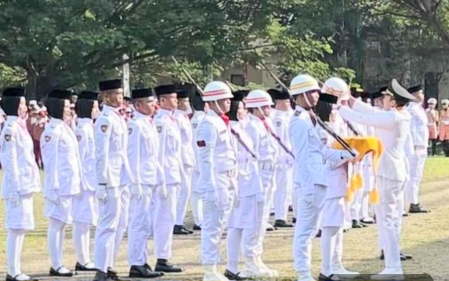Usai upacara peringatan HUT ke-80 RI, pendamping pasukan pengibar bendera yang mengalami insiden tersebut dialami oleh BRIPDA Yogi Saputra, dari Sat Samapta Polres Ogan Ilir.