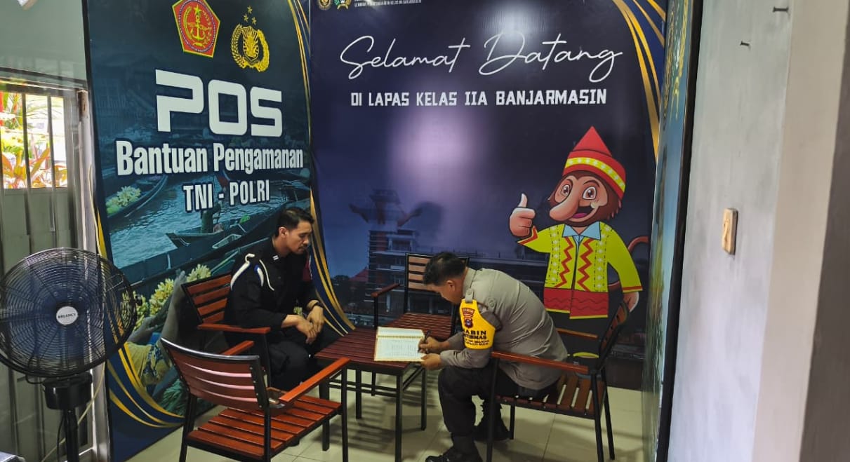 Lapas Kelas IIA Banjarmasin menerima bantuan keamanan dari Babinkamtibmas Polsek Banjarmasin Barat pada Senin (20/10) untuk memastikan lingkungan Lapas tetap aman dan tertib.