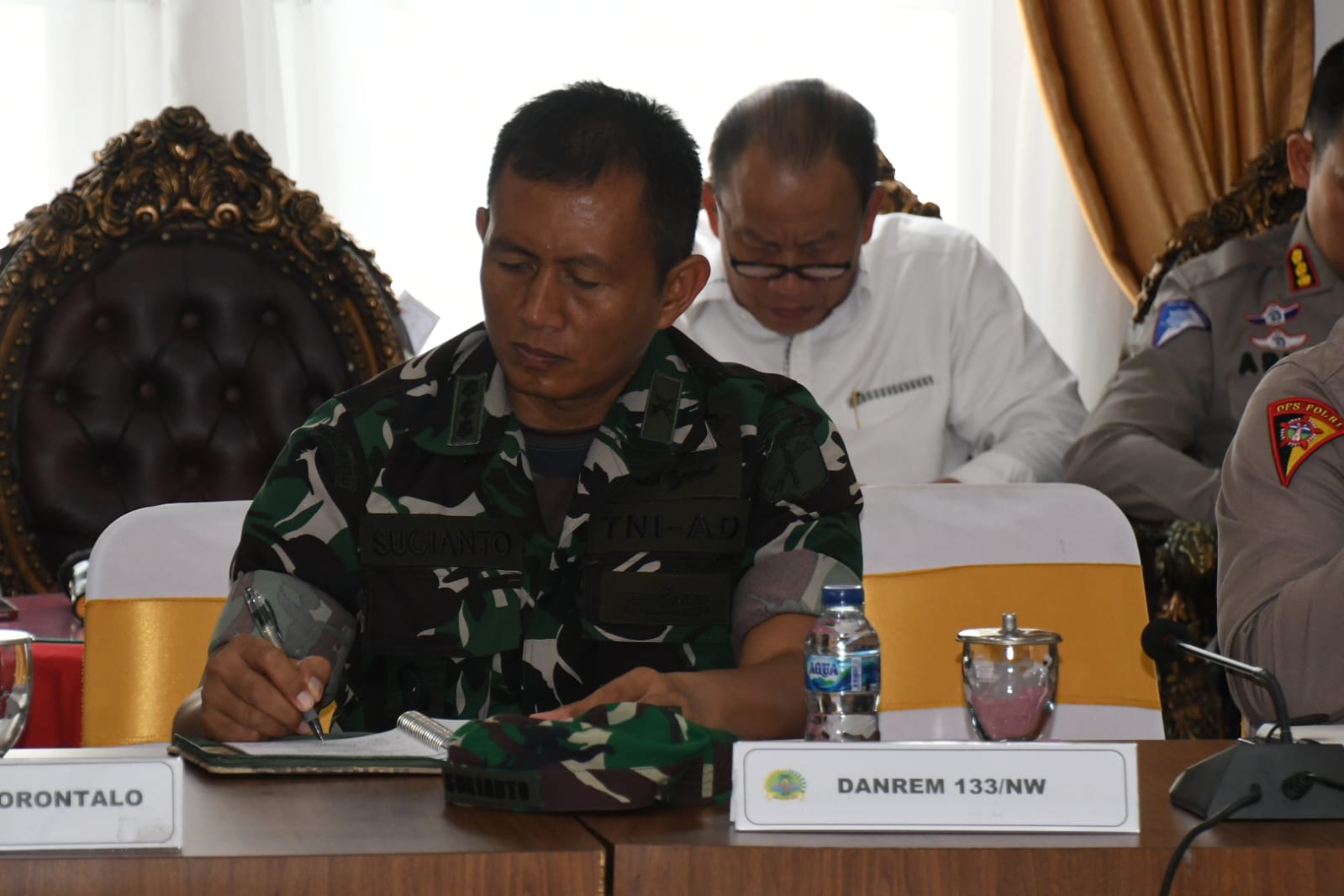 Sementara itu, Danrem 133/NW Brigjen TNI Amrin Ibrahim, S.I.P melalui Kasiren Rem 133/NW Kolonel Kav Sugianto S.E menyampaikan bahwa TNI AD khususnya Korem 133/Nani Wartabone siap untuk mendukung Polri dan Pemda dalam rangka mengantisipasi kerawanan perayaan Nataru, baik dukungan personel maupun Alutsista yang berada di wilayah Korem 133/NW.