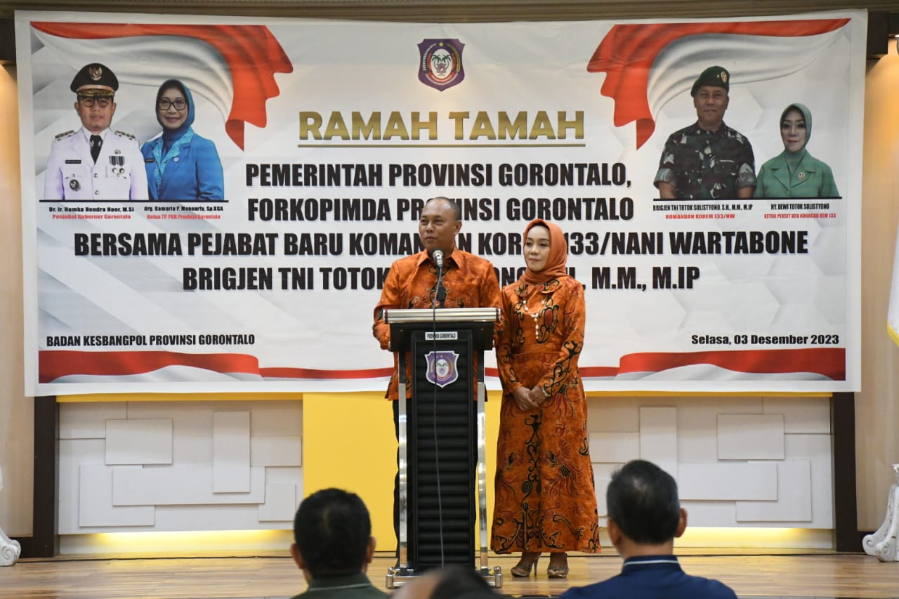 Pada kesempatan yang sama, Penjabat Gubernur Gorontalo Dr. Ir. Hamka Hendra Noer, M.Si, mengatakan saya mewakili Forkopimda mengucapkan selamat datang kepada Bapak Danrem 133/NW Brigjen TNI Totok Sulistyono, S.H., M.M., M.I.P. di Gorontalo.
