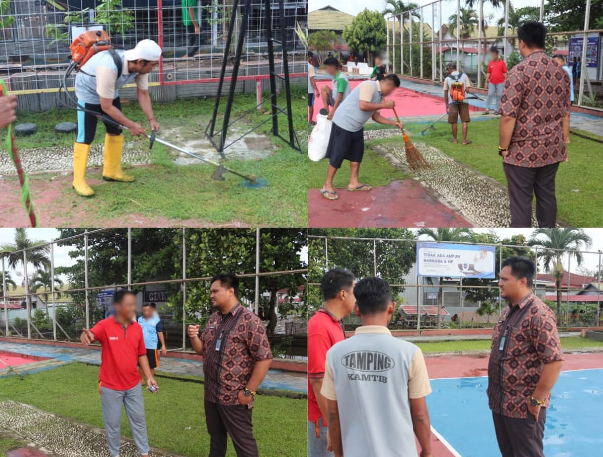 Dalam rangka menjaga kebersihan dan keindahan lingkungan, para Tamping Kamtib (Keamanan dan Ketertiban) Lapas Kelas IIA Banjarmasin melaksanakan kegiatan pembersihan dan perapian rumput di sekitar area lapangan voli, Kamis (23/10).
