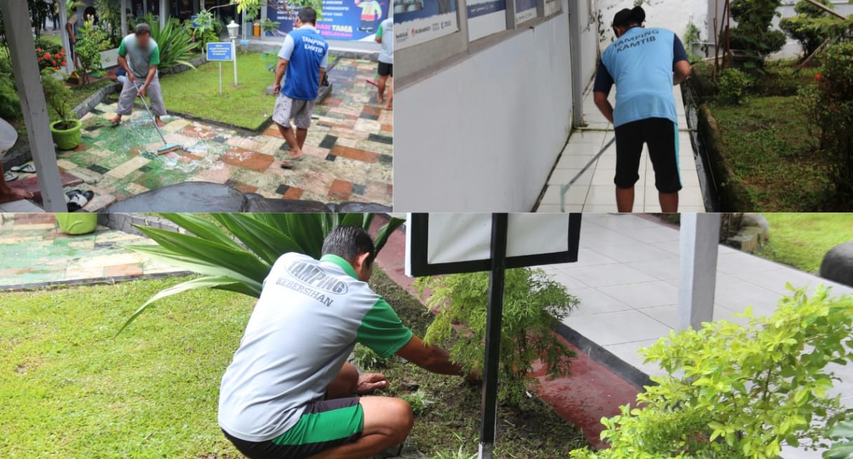 Para tamping dengan telaten menyapu, membersihkan sampah, serta merawat fasilitas umum di area selasar dan taman. Upaya mereka tidak hanya menjaga kebersihan fisik, tetapi juga menciptakan suasana yang sehat dan nyaman, mendukung aktivitas harian WBP serta memberikan rasa aman dan tenteram di lingkungan lapas.