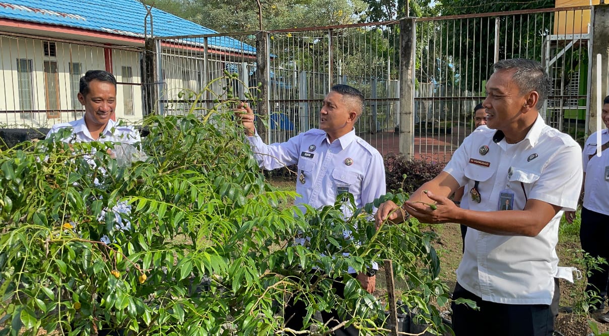 Kepala Lembaga Pemasyarakatan (Lapas) Narkotika Kelas IIA Karang Intan, Edi Mulyono, meninjau langsung perkembangan tanaman kedondong yang tumbuh subur di area kebun pasca rehabilitasi, Rabu (26/6). Langkah ini merupakan bagian dari monitoring berkelanjutan terhadap program pembinaan berbasis pertanian di dalam lapas.