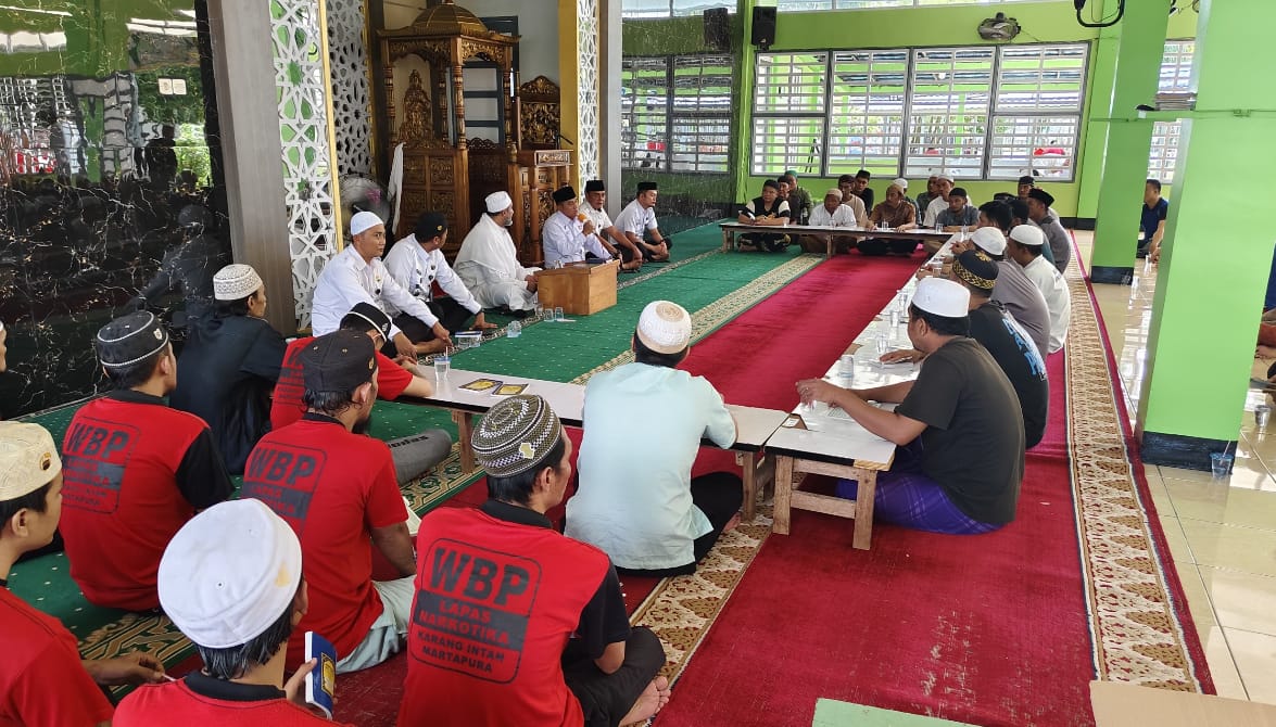 Dalam upaya memperkuat pembinaan kerohanian di lingkungan pemasyarakatan, Lapas Narkotika Kelas IIA Karang Intan melaksanakan kegiatan pembacaan Sholawat Dalail Khairat dan pengajian ilmu fikih bersama Ustadz H. Badarudin, Rabu (14/5). Kegiatan yang berlangsung di Masjid At-Taubah ini juga dirangkaikan dengan pembacaan Surah Yasin secara bersama-sama oleh warga binaan pemasyarakatan (WBP).