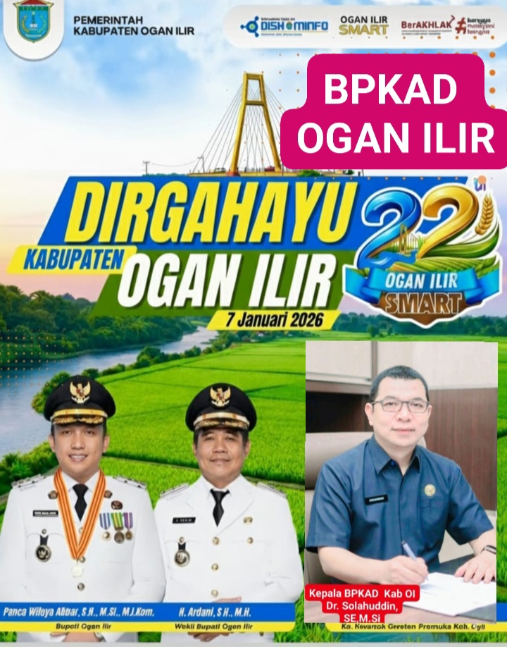 Ogan Ilir,Zonabangsa.com — Kepala BPKAD Kab Ogan Ilir Bapak. Dr. SHOLAHUDDIN, SE, M.Si.Berserta Staf Dan Jajaran.Mengucapkan, Selamat Ulang Tahun Kabupaten Ogan Ilir Ke 22 Tahun 2026.