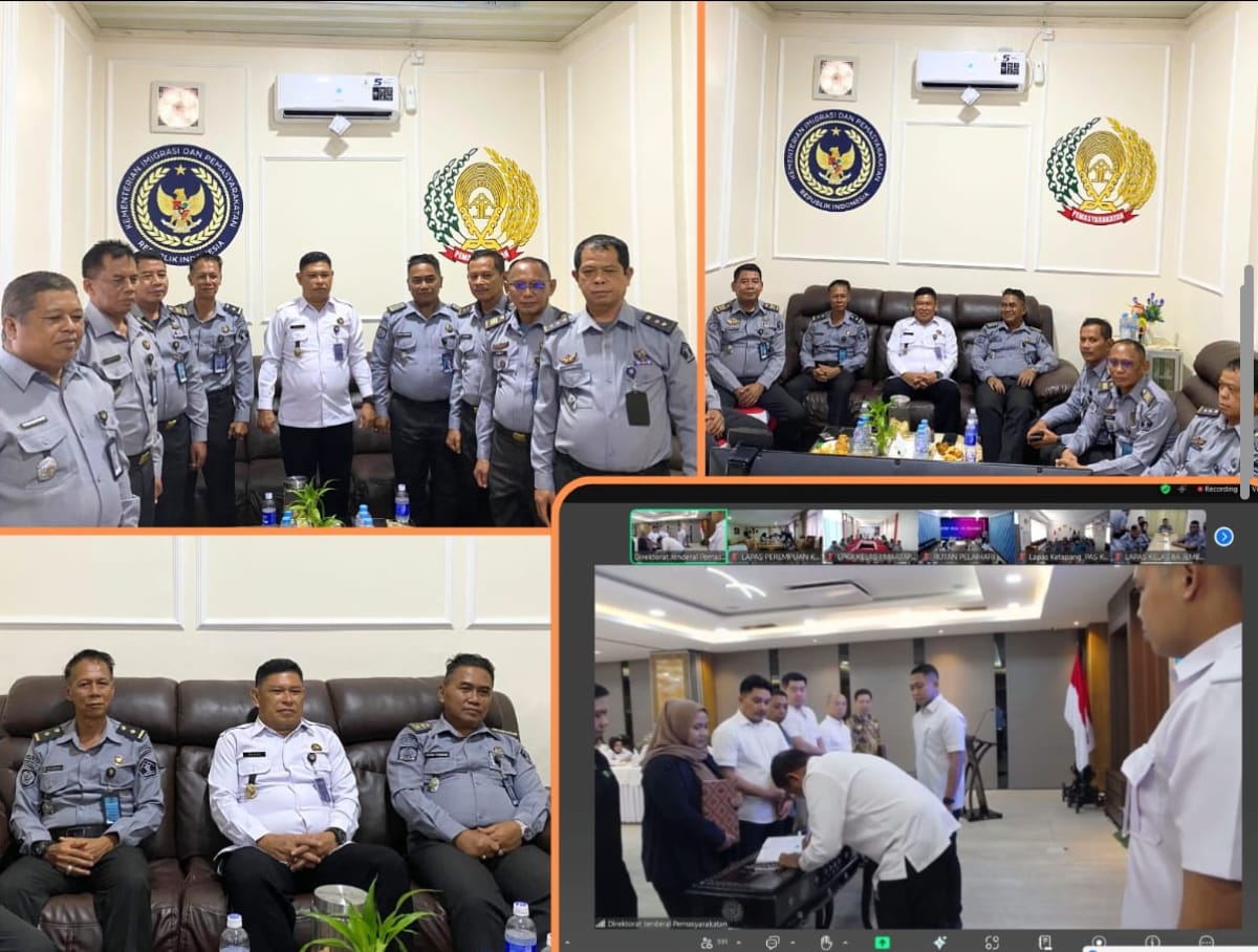 Kepala Lapas Kelas IIA Banjarmasin, Akhmad Heriansyah beserta pejabat struktural Lapas Banjarmasin, mengikuti kegiatan penandatanganan naskah kerja sama antara Direktorat Jenderal Pemasyarakatan (Ditjenpas) dengan delapan mitra strategis secara daring, Selasa siang (01/07).