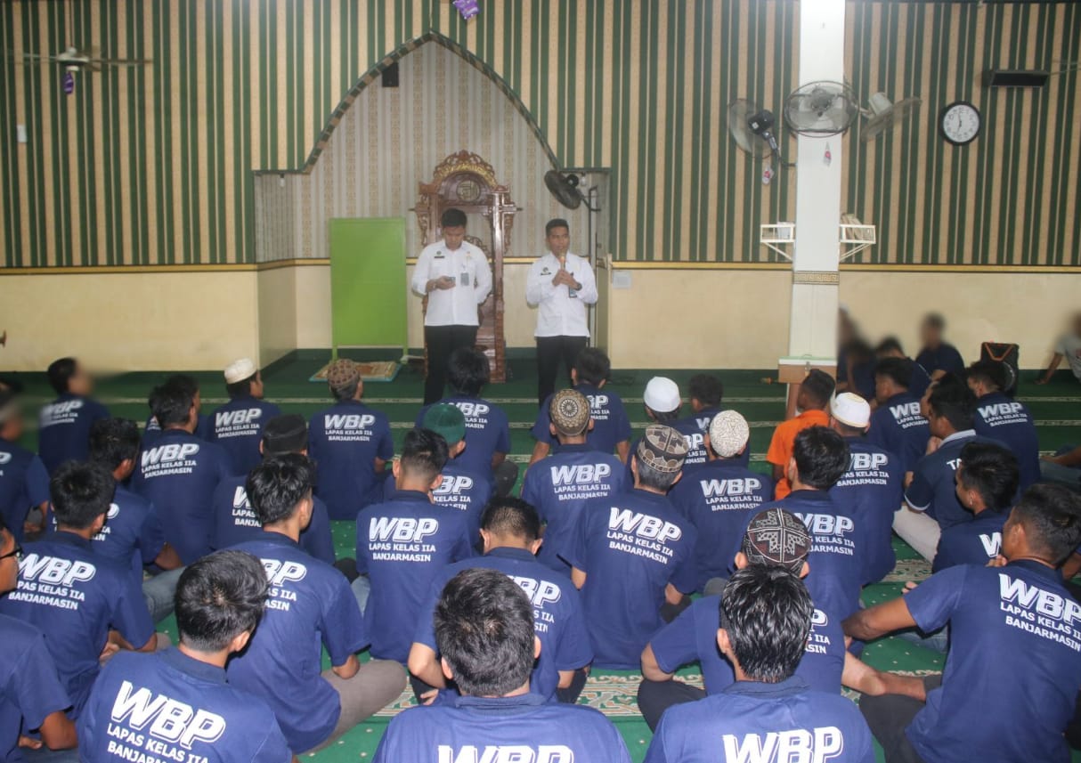 Sebanyak 143 warga binaan pemasyarakatan (WBP) mengikuti arahan dari Kasubsi Bimbingan Kemasyarakatan dan Perawatan (Bimkemaswat), Muhammad Ansyari, di Masjid Baabut Taqwa Lapas Kelas IIA Banjarmasin, Senin (20/10).