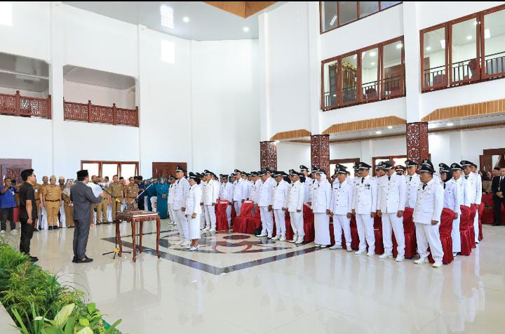 Bupati Lampung Barat Parosil Mabsus secara resmi melantik 60 peratin (Kepala Desa) di wilayah kabupaten setempat, Senin (25/08/2025).