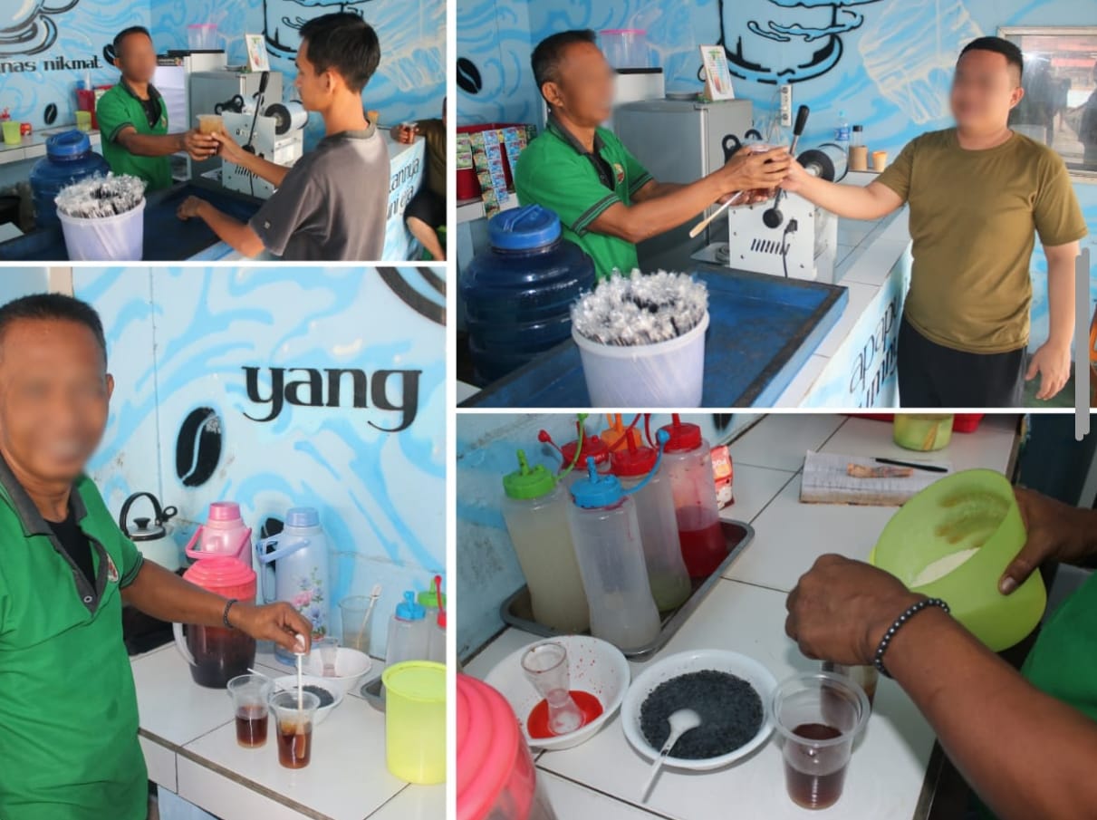 “Jus hari ini banyak digemari. Apalagi kalau siang, teman-teman sering cari yang segar. Es sirup Marjan juga cukup sering dibeli. Tapi kalau lagi panas-panas begini, es teh itu paling laku,” ungkap Zainal sambil meracik pesanan, Minggu (27/07).