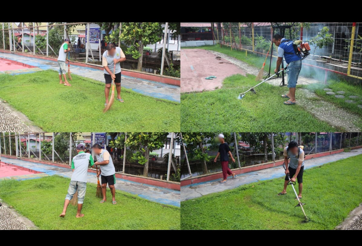 Kamis (13/11) pagi, sejumlah Tamping Kebersihan Lapas Kelas IIA Banjarmasin melaksanakan kegiatan pembersihan dan pemotongan rumput liar di area samping lapangan bola voli. Kegiatan berlangsung tertib dan terarah di bawah pengawasan Petugas Subseksi Keamanan, yang turut memastikan pelaksanaannya berjalan aman dan sesuai prosedur.