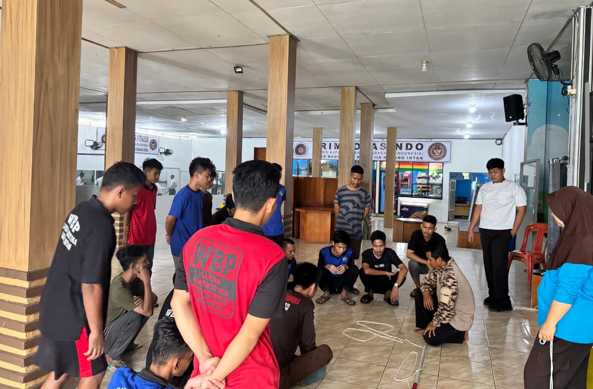 Lembaga Pemasyarakatan (Lapas) Narkotika Kelas IIA Karang Intan terus konsisten menghadirkan pembinaan berbasis karakter dan keterampilan bagi Warga Binaan Pemasyarakatan (WBP). Kali ini, 21 WBP mengikuti pelatihan pionering dan tali-menali yang digelar bersama Kwartir Cabang (Kwarcab) Gerakan Pramuka Kabupaten Banjar, Senin (21/7).