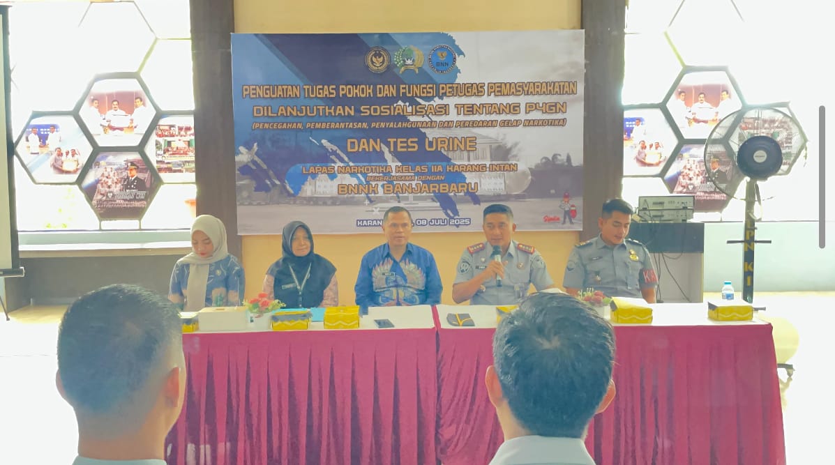 Lembaga Pemasyarakatan (Lapas) Narkotika Kelas IIA Karang Intan menggelar kegiatan Penguatan Tugas Pokok dan Fungsi (Tusi) Petugas Pemasyarakatan yang dirangkai dengan Sosialisasi Pencegahan, Pemberantasan, Penyalahgunaan dan Peredaran Gelap Narkotika (P4GN), Selasa (8/7).