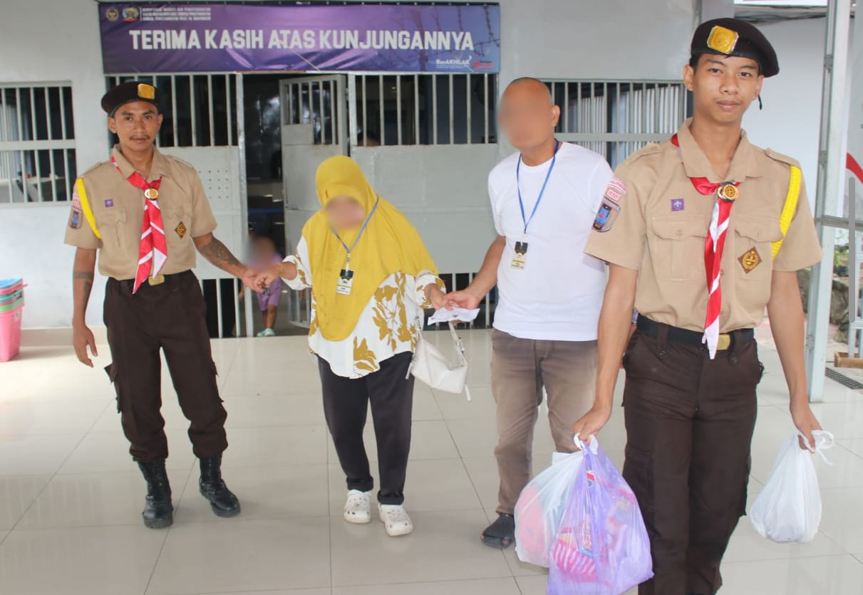 Dengan mengenakan seragam pramuka lengkap, mereka terlihat aktif membantu mengarahkan para pengunjung, memandu proses pengisian buku tamu, hingga membantu membawa barang titipan yang dibawa keluarga warga binaan. Tak hanya menunjukkan kedisiplinan, para anggota pramuka ini juga tampil dengan sikap ramah dan siap membantu setiap saat.