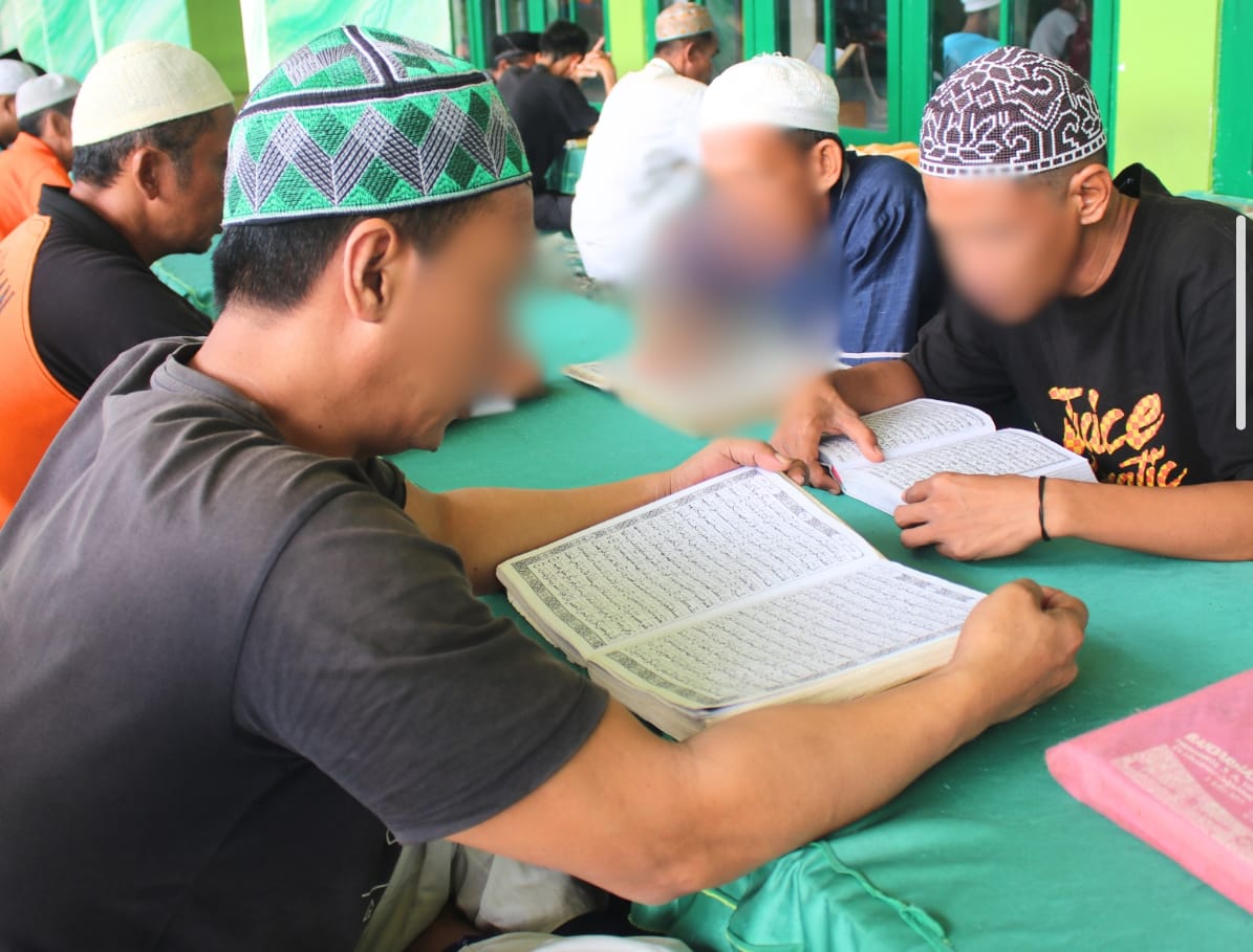 Duduk berjajar beralaskan sajadah, para warga binaan tampak tekun menyimak dan membaca ayat demi ayat. Mereka membaca secara mandiri maupun saling bertanya tentang bacaan yang belum mereka pahami. Suasana masjid pun dipenuhi dengan lantunan ayat-ayat suci dan semangat untuk memperbaiki diri.