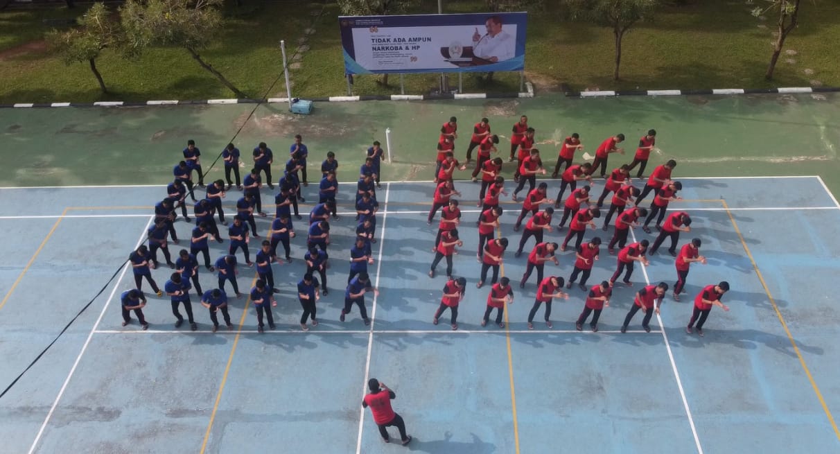 Usai pelaksanaan upacara peringatan Hari Kebangkitan Nasional (Harkitnas) ke-117, warga binaan pemasyarakatan (WBP) Lapas Narkotika Kelas IIA Karang Intan mempersembahkan penampilan yel-yel penuh semangat sebagai bentuk partisipasi dan penghormatan terhadap momen bersejarah ini, Senin (20/5).
