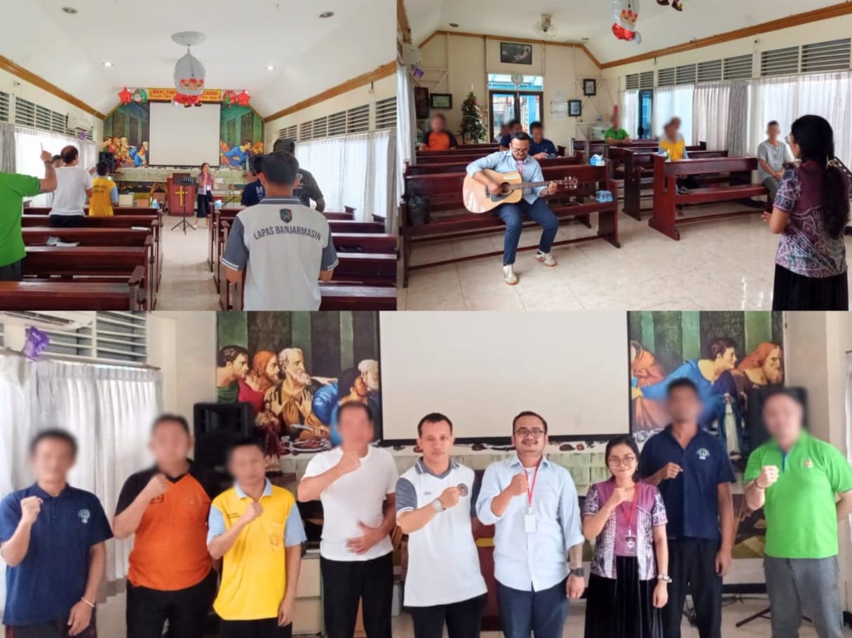 Bertempat di Gereja Oikumene Lapas Kelas IIA Banjarmasin, seluruh Warga Binaan Pemasyarakatan (WBP) Kristiani melaksanakan ibadah rutin bulanan yang dipimpin oleh tim pelayanan dari Yayasan Cahaya Kasih, Jumat (24/10).